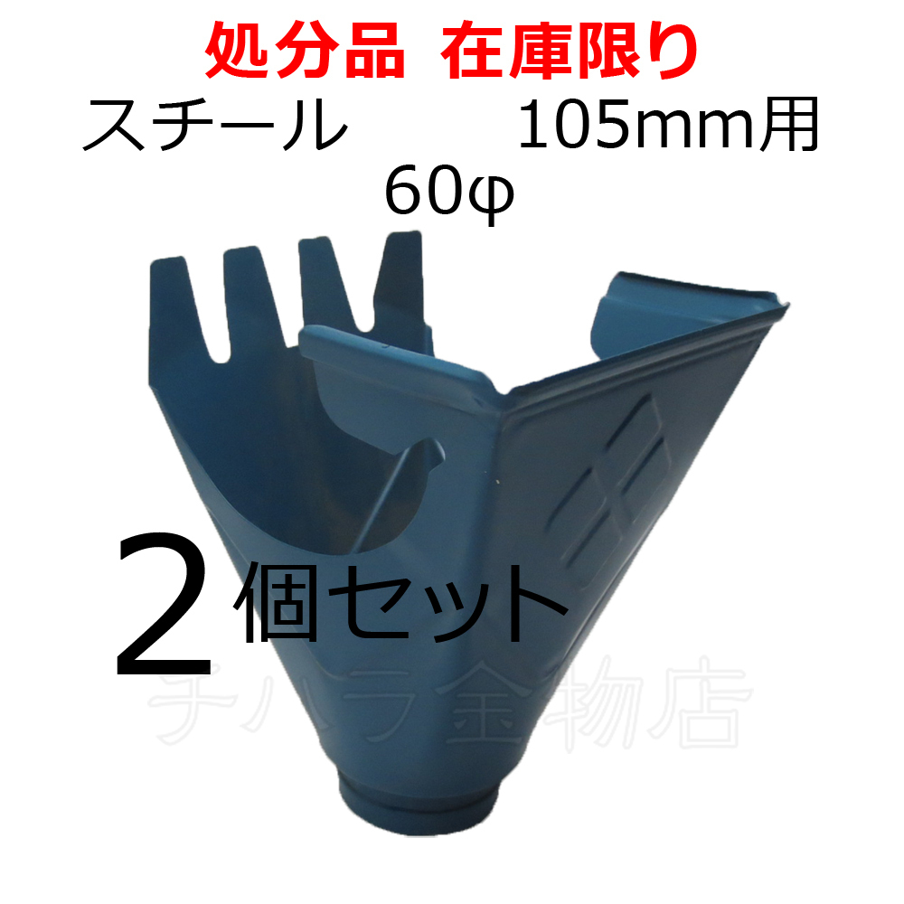 > ヨド樋 スチール 角集水器 105mm用 60φ 2個セット 青 金属製雨樋 在庫処分品(汚れキズあり)