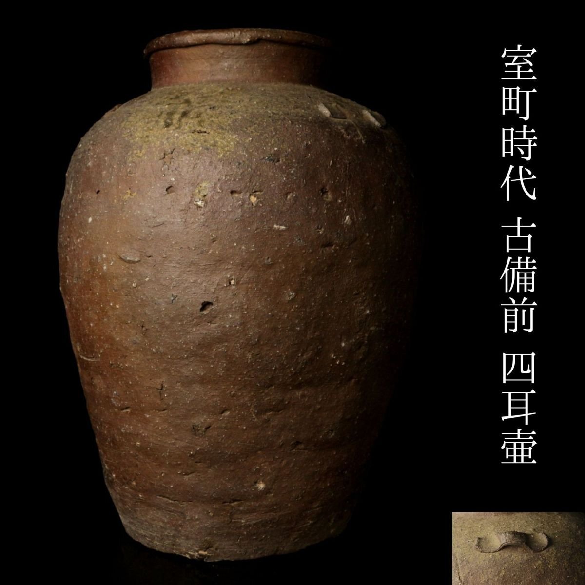 > 【LIG】室町時代 古備前 四耳壷 39㎝ 自然釉 胡麻 六古窯 花器 古美術品 コレクター収蔵品 [.WW]25.08