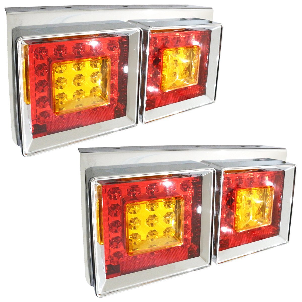 - 汎用 中型 大型 トラック フルLED 24V 角型 テール ランプ 2連 赤/黄 テール ウインカー 2t 4t 10t 40cm×21cm 幅400mm 左右