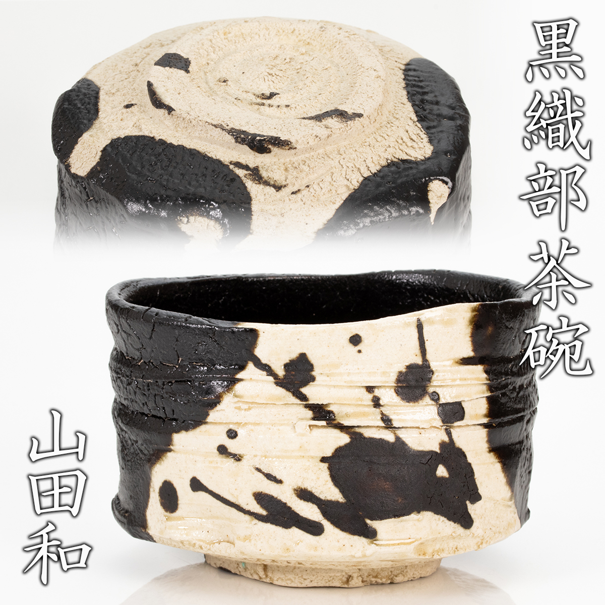 - 山田和『黒織部茶碗』最上位作 共箱 共布 栞 本物保証 送料無料【松森美術】