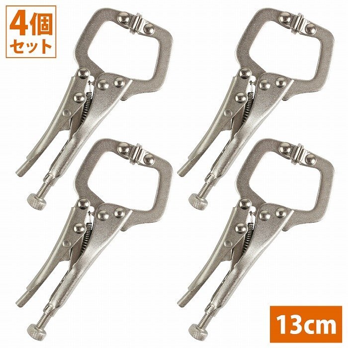 > 4個 13cm C型 バイスプライヤー 板金 溶接 木工 万力 レバー クランプ 工具 ロッキング ロック プライヤー 平口 クリップ 4本