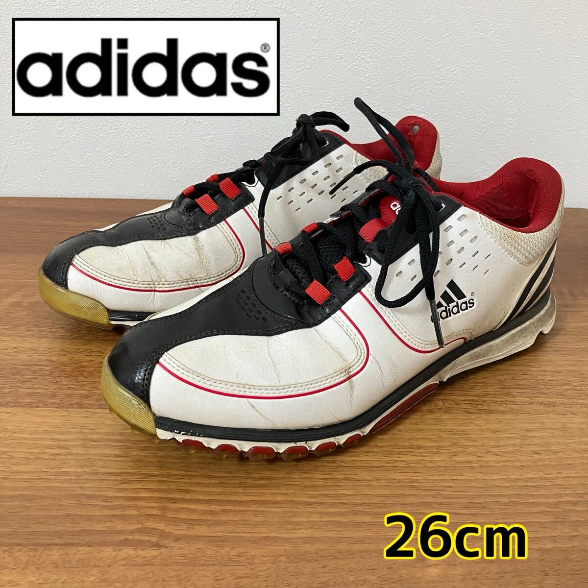 > TA■ adidas アディダス ゴルフシューズ 26cm メンズ ホワイト ブラック レッド ゴルフ スニーカー シューズ スポーツ 靴 ゴルフウェア