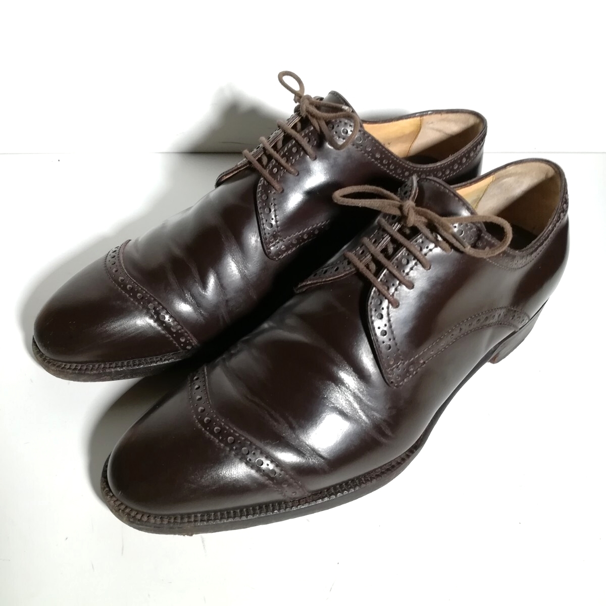 - d0082 ★ボノーラ BONORA★ 331 パンチドキャップトゥ 6 1/2 革靴サイズ25.5~26.0cm程度 ダークブラウン ドレス 高級革靴 紳士靴 本革