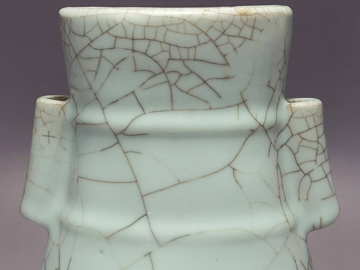 - ● 高さ 約 23.1cm 落ち着いて柔らかい釉薬とほのかな青玉色の釉薬が神秘的で美しい 時代唐物 貫入青磁 両耳 瓶・宋元時代 花瓶 飾瓶 ●