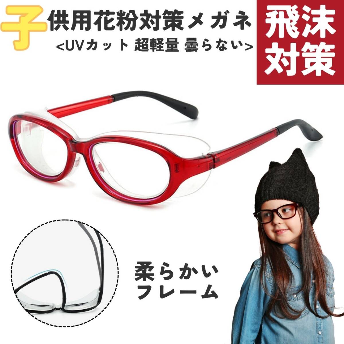 - 感染対策 メガネ おしゃれ レッド 子供用花粉対策メガネ 飛沫防止 男女兼用