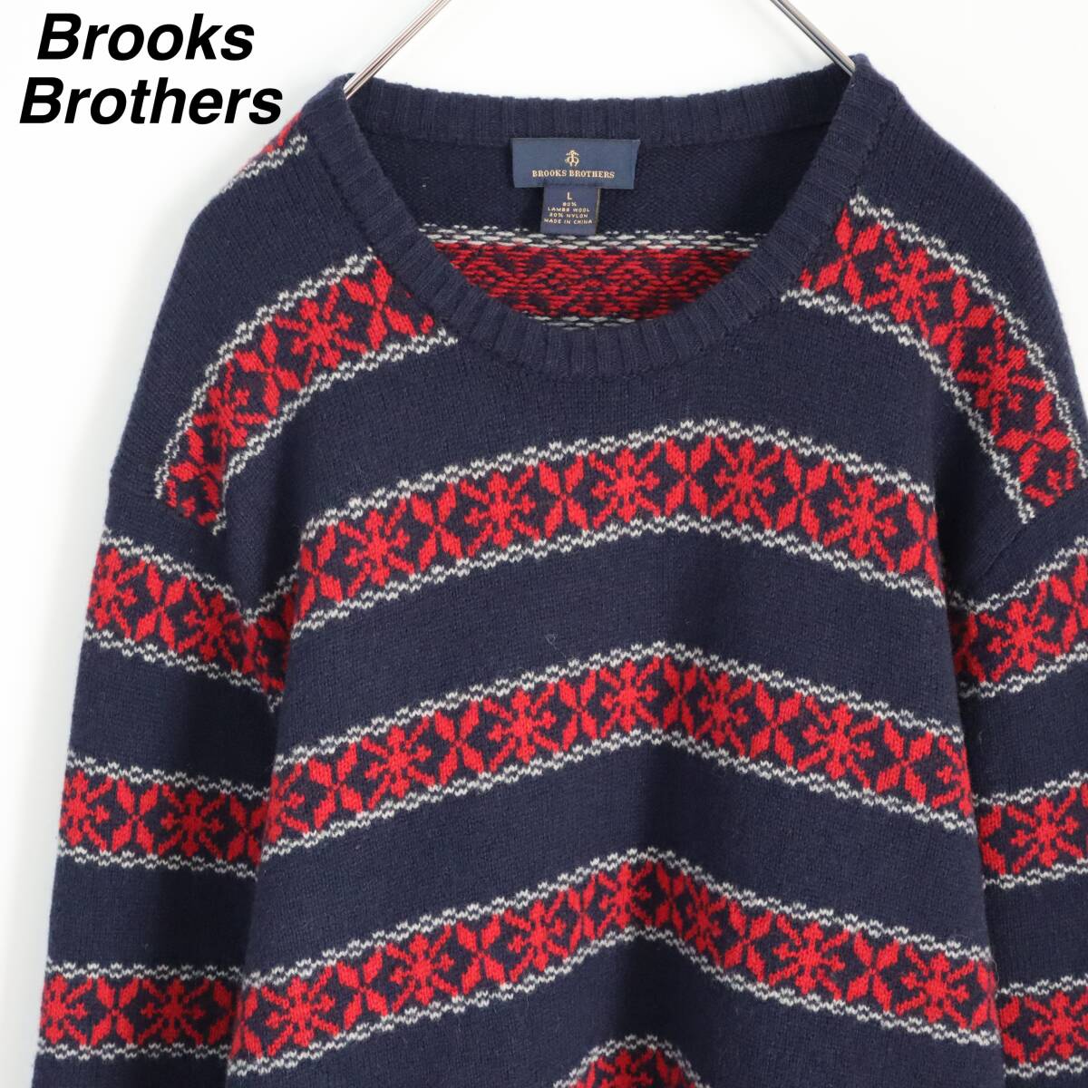 - 【ノルディック柄】ブルックスブラザーズ ニット ラムウール 総柄 ボーダー柄