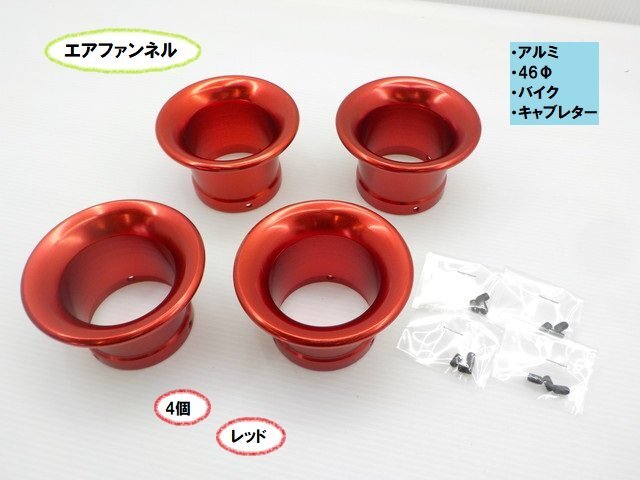 - TH59★☆アルミエアファンネル(46Φ)(バイク キャブレター)4個セット レッド(CB400ST バリオス SR400 250TR DAX エイプ)