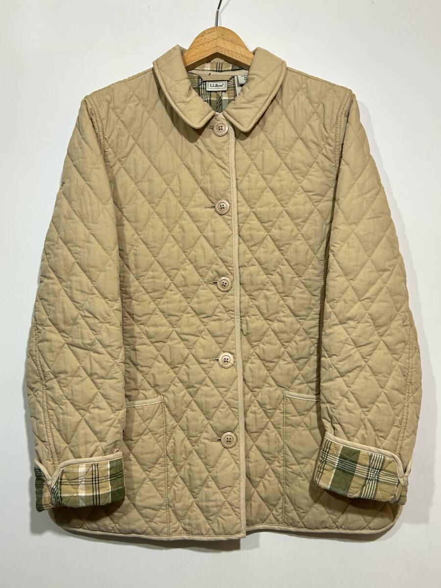 - ★ 90s 00s L.L.Bean WOMEN'S 中綿 キルティングジャケット M ベージュ 裏地チェク柄 Thermore サーモア搭載 アウター ボタンジャケット