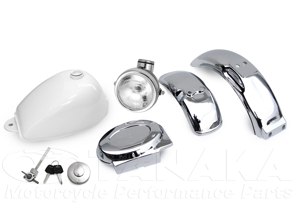 - モンキー5L用ホワイト燃料タンク・サイドカバー・前後フェンダー[Y240] 田中商会