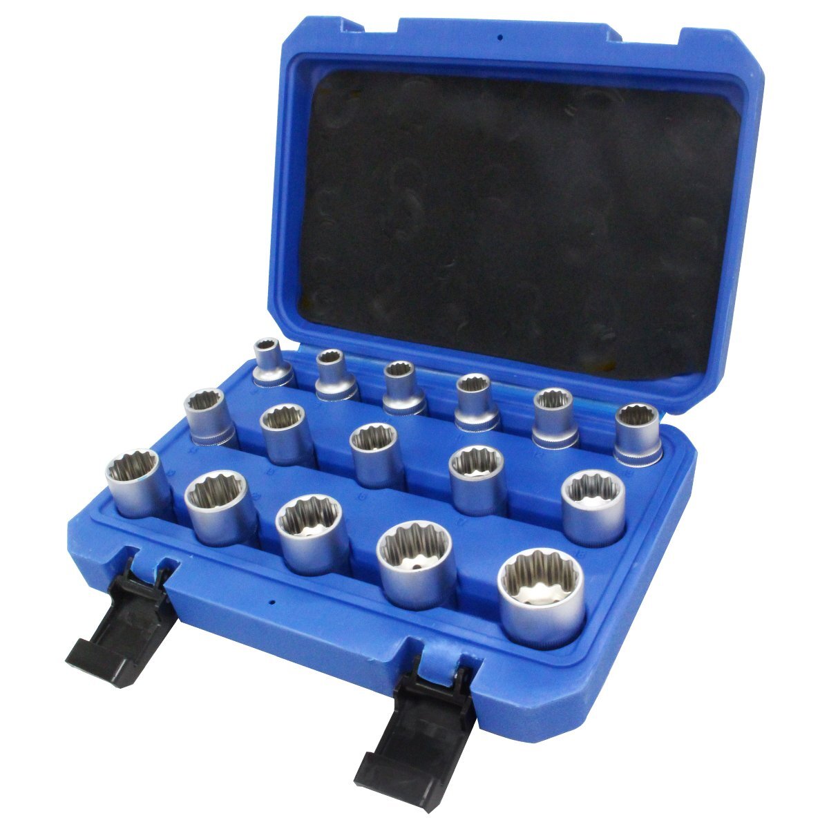 > スプラインソケットセット 16個 ソケットレンチ 差込角1/2 クロムバナジウム鋼 工具 修理 DIY 日曜大工