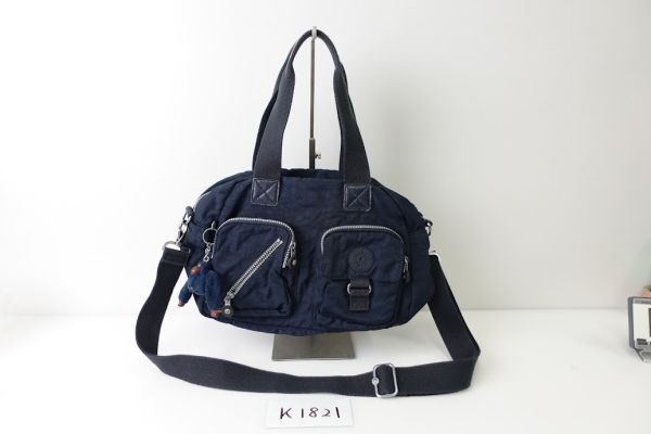 - 【k1821】KIPLING キプリング ハンドバッグ トートバッグ マスコット付 ネイビー