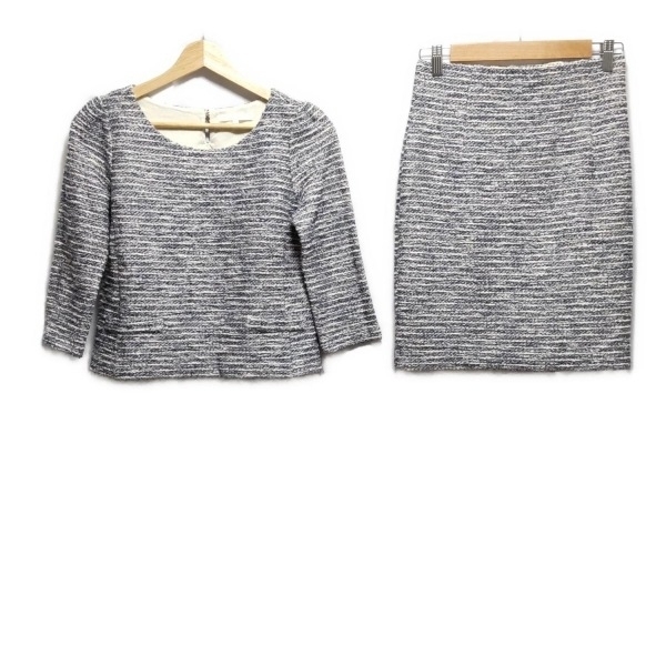 > アナイ ANAYI スカートセットアップ - 白×ダークネイビー レディース ツイード/ラメ 美品 レディーススーツ