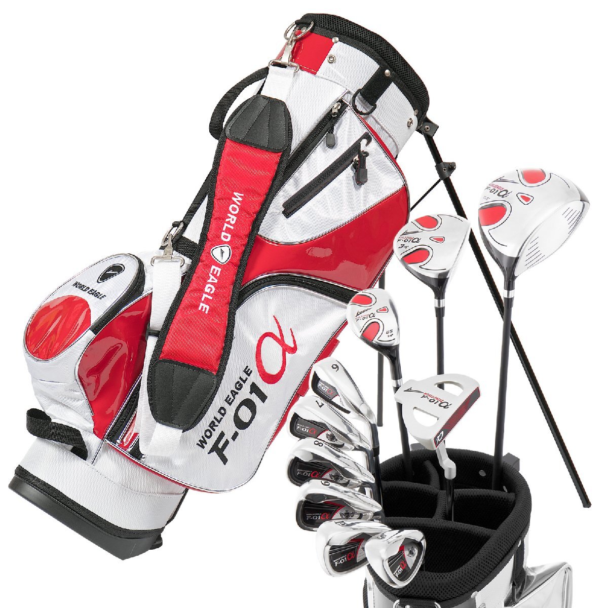 - F-01α メンズゴルフクラブセット スタンド式軽量キャディバッグ付 右利き用 フレックスS/バッグ:ホワイトレッドカラー[33950]