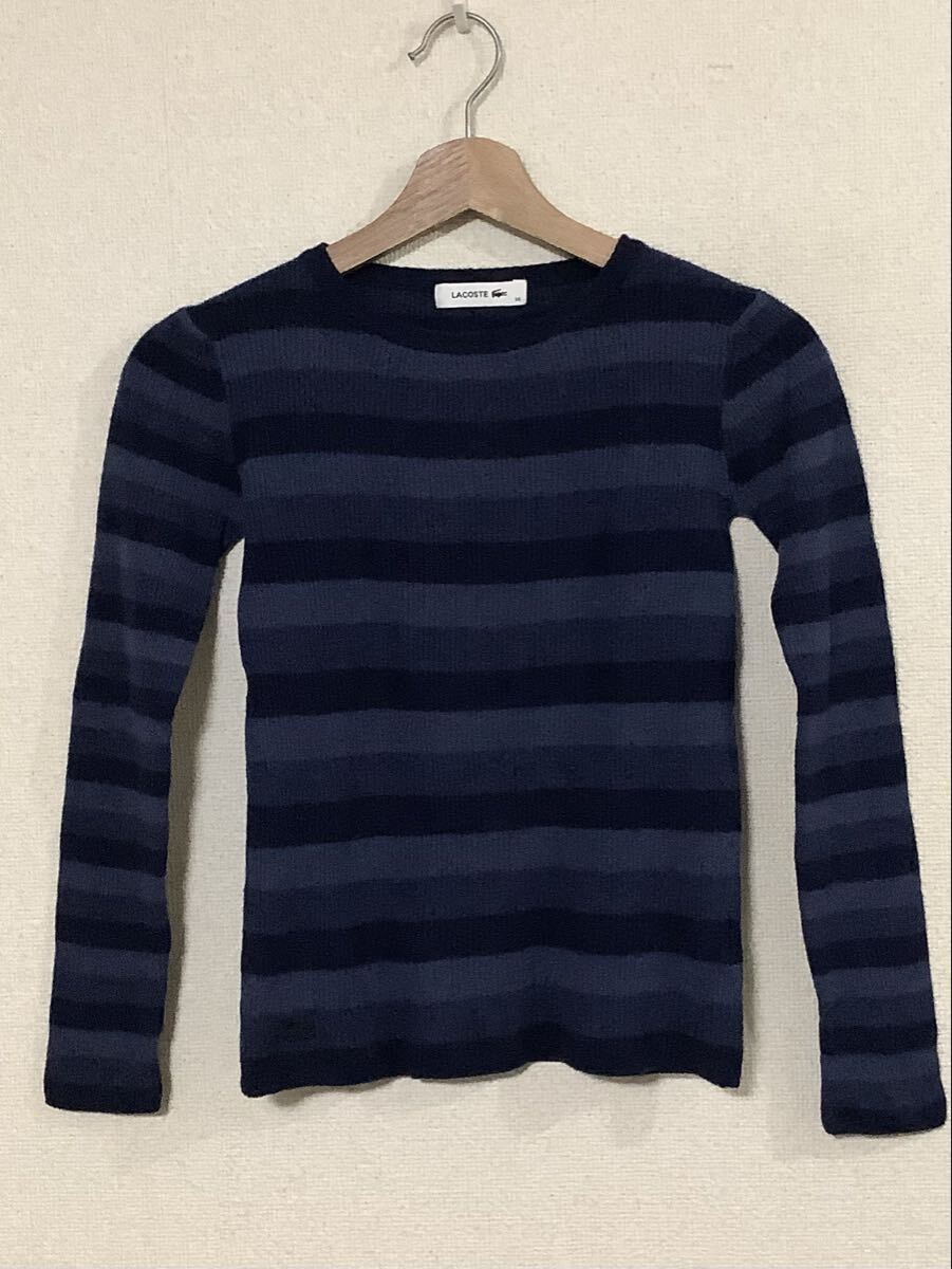 > LACOSTE ラコステ ボーダー柄長袖ニット セーター ネイビー セレクト レディース ミセス 36 紺