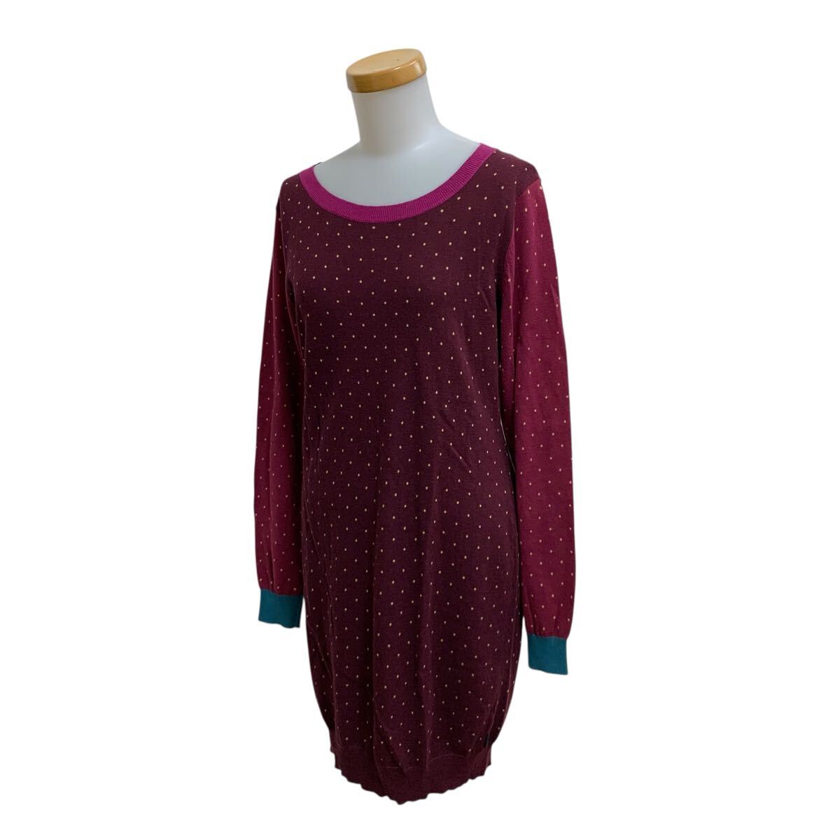 > 11NK012-40 Paul Smith ポールスミス 薄手 長袖 ニット セーター トップス ワンピース チュニック ボルドー 赤紫 系 ドット レディース M