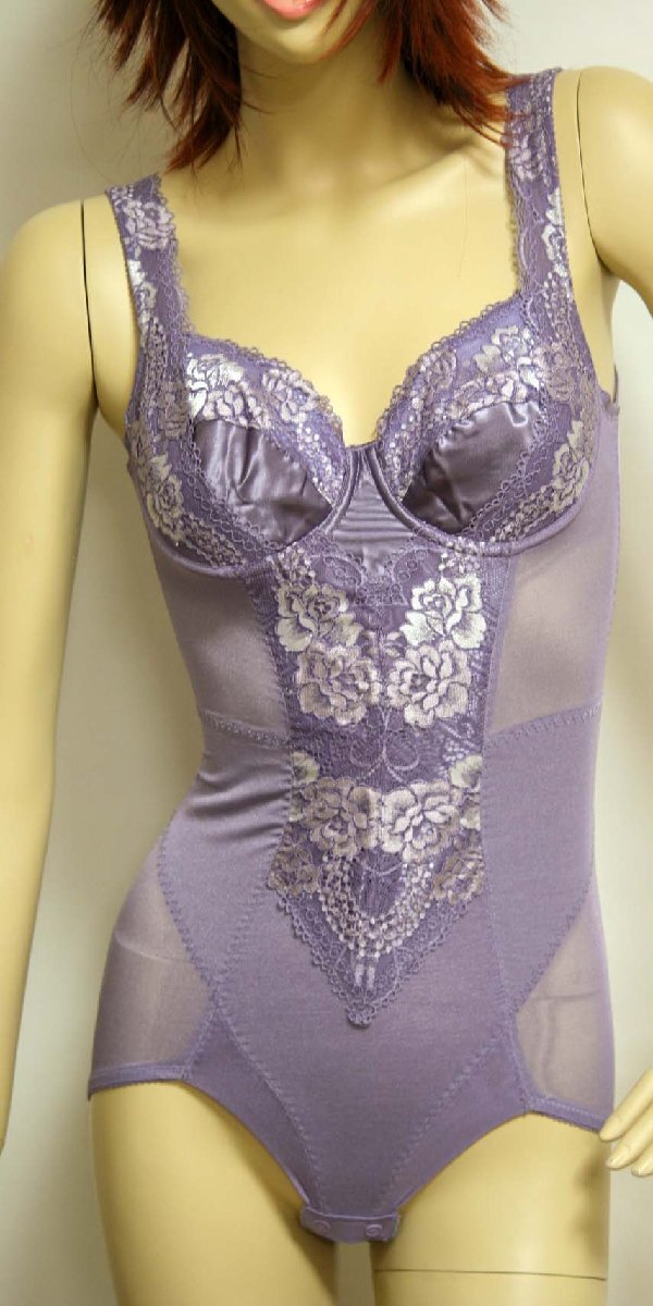 > 送料無料◆薄軽メッシュ◆サイドパネル◆バスト寄せ上げボディスーツ(D/70M/パープルラベンダー)◆通気性抜群◆パワーネット◆補正下着◆