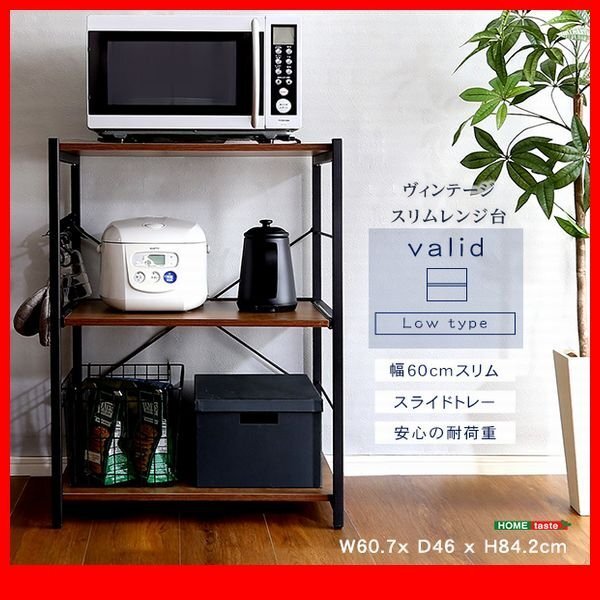> レンジ台★新品/ヴィンテージスリムレンジ台/幅60cm スライドトレー/木目調 ナチュラル系 濃茶系/シャビーオーク ウォールナット/zz