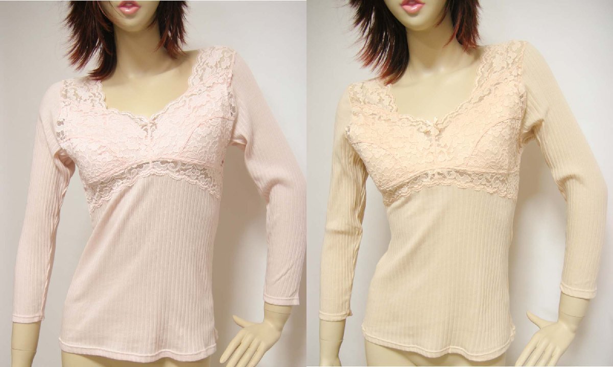 > 送料無料◆まとめ買い◆2色×2組◆カップ付きらくらく8分袖インナー(L/ピンク&ベージュ)◆綿100%◆針抜き編み◆伸縮性抜群◆吸汗&放湿性