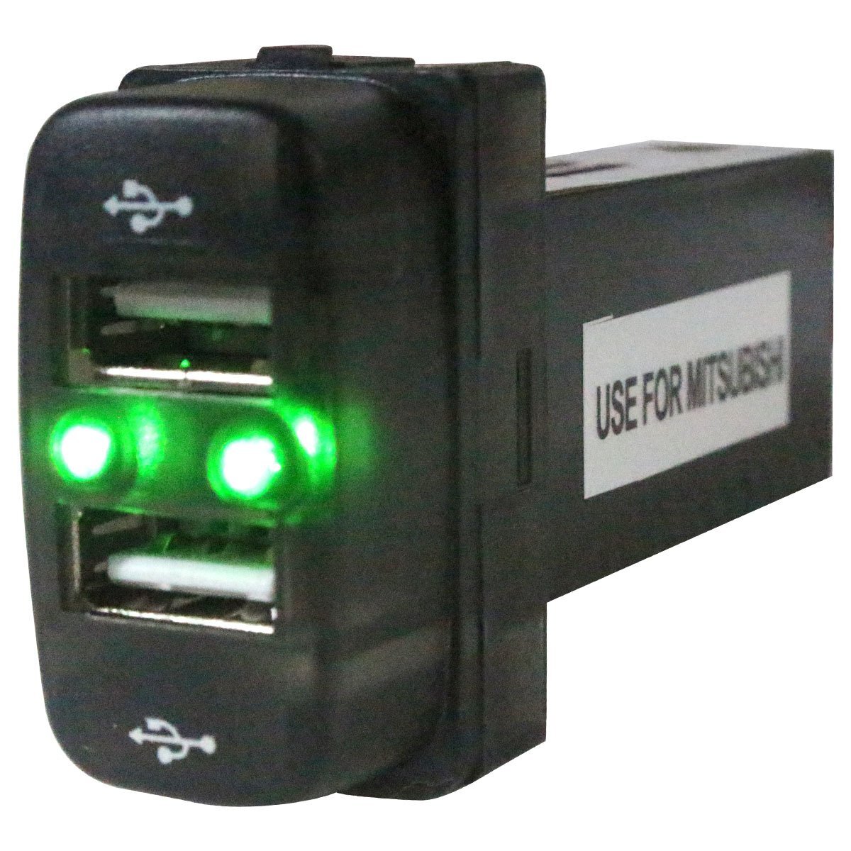 - 『ミツビシA』 デリカD/5 D5 CV1/2/5 LED/グリーン 新設2口 USBポート 充電 12V 2.1A 増設 パネル USBスイッチホールカバー 電源