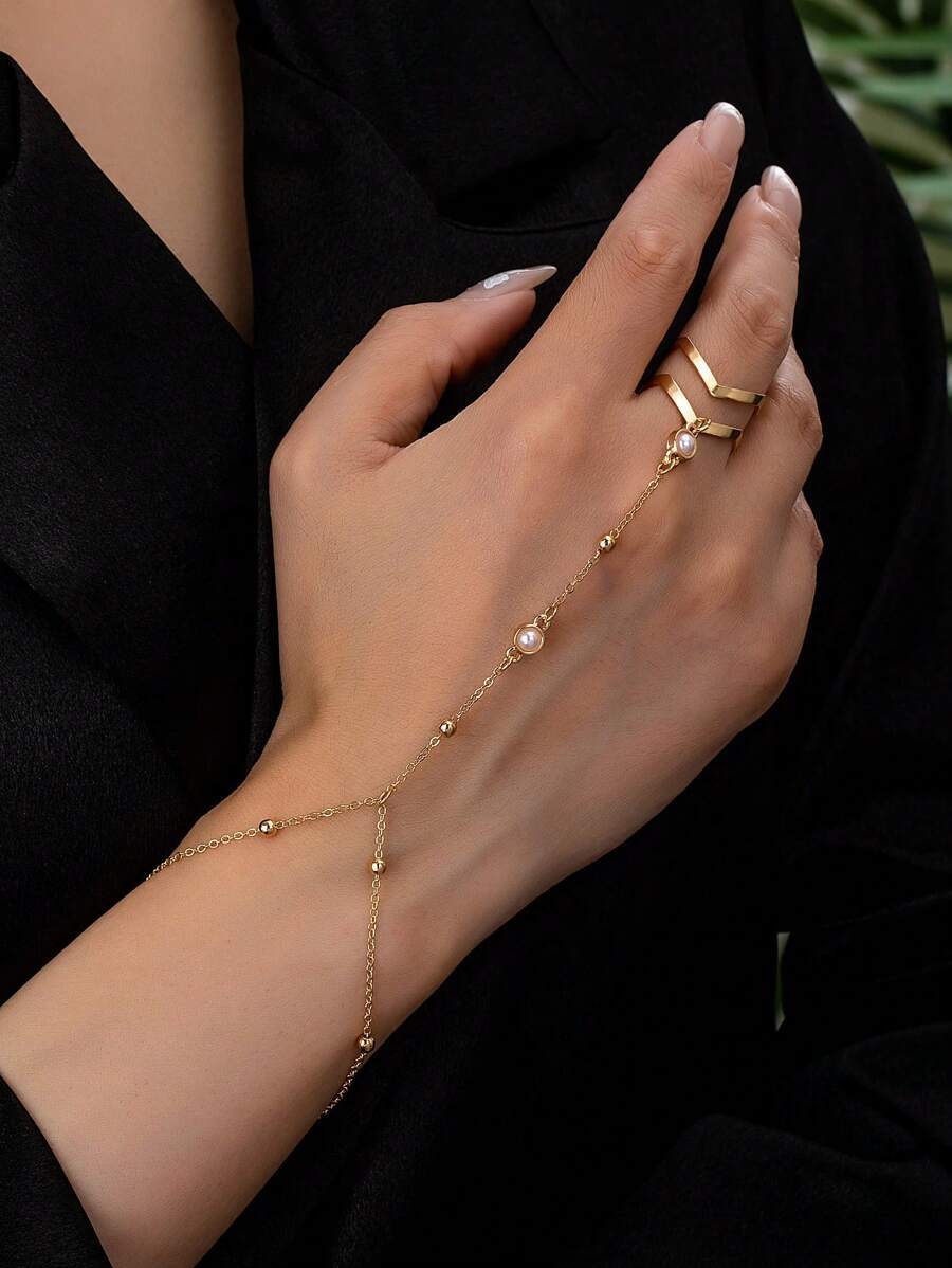 > ジュエリー レディース ブレスレット ミトン 1個ファッションミニマリストビーンリンク接続フィンガーリングチェーンブレスレット、女