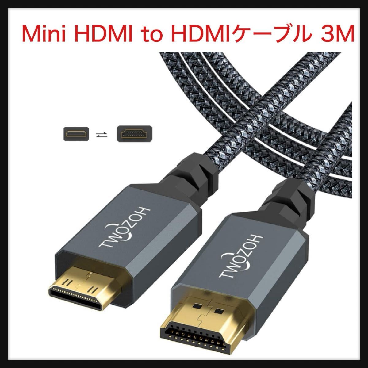 - 【開封のみ】Twozoh ★Mini HDMI to HDMIケーブル 3M, 4K 60Hz UHD Mini-HDMIオス-HDMIオス変換ケーブル,HDMI ケーブル タイプC (HDMIミニ)