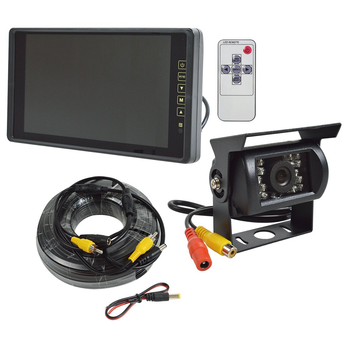 - 『3点セット』12V CMOS 暗視 LED バックカメラ + 9インチ モニター 30m 延長ケーブル 配線付き リアカメラ バックミラーモニター