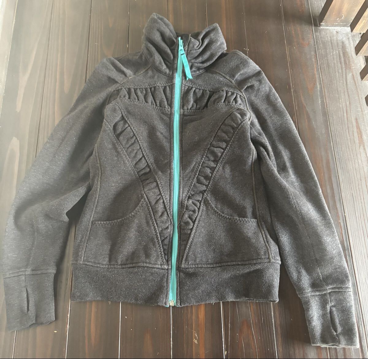 - ivivva★フィギュアスケート★ジャケット★中古★14★練習着★グレー★ミントグリーン★ラメ