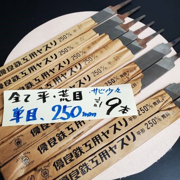 - 【アウトレット品】 ツボ西 ツボクレ 優良 鉄工用 ヤスリ (単目)平 250㎜ 荒目 計9本セット 鑢 バリ取り 鉄工ヤスリ やすり sp-032-584