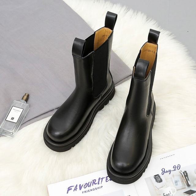 > レディース 秋新作 ブーツ サイドゴア ロングブーツ ショートブーツ ミドル 長靴 厚底 シューズ 秋 ブラック(ショート)24.5cm