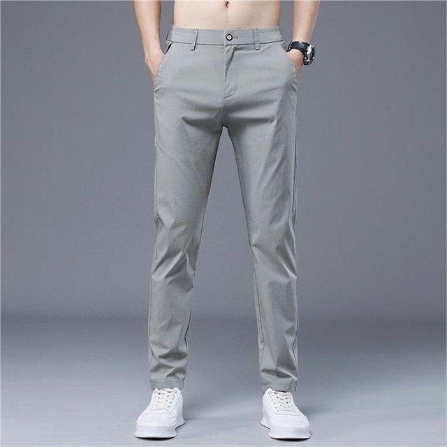 - 細身 美脚 涼しいズボン メンズ ストレッチ 接触冷感 夏物 無地 チノパン ゴルフパンツ 薄手 通気性 グレー サイズ 34