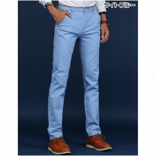 - おしゃれ シンプル ロングパンツ メンズ 通学 通勤 カジュアル ビジネス かっこいい無地ライトブルー サイズ 29