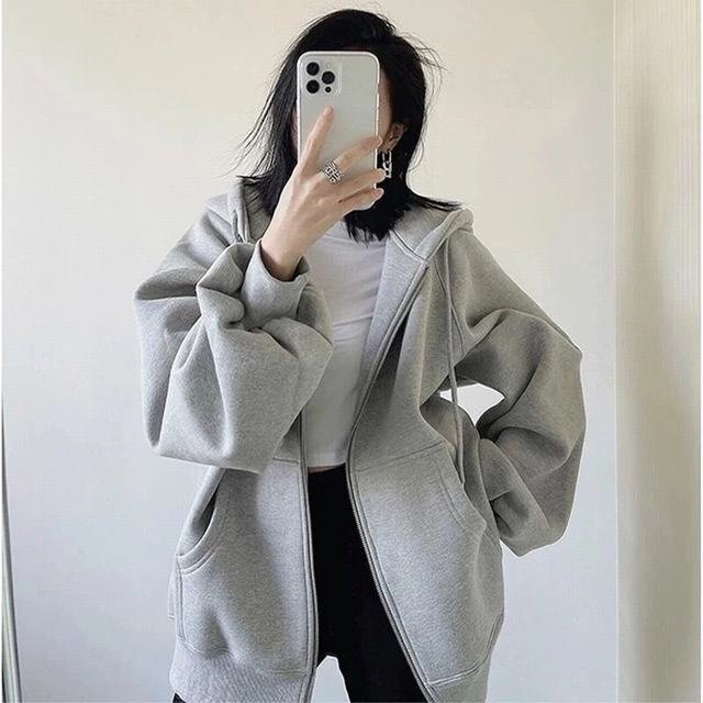 - パーカー ジップパーカー ジャージ スウェットトップス レディース ガールズ アウター フード付き 上着 長袖 キャンパス 着痩せL
