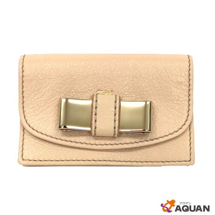 - 送料無料 Chloe クロエ LILY リリィ 名刺入れ カードケース 3P0550-015 PORTE CARTE ベージュ リボン aq2665