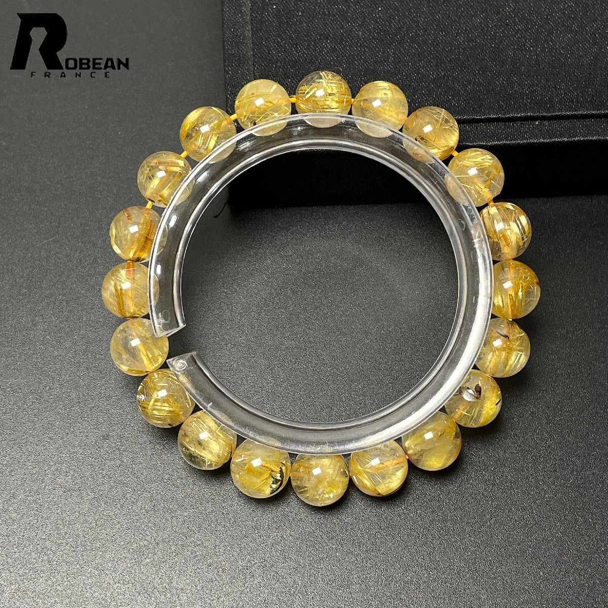 - 上級 EU製 定価10万円★ROBEAN・太陽花タイチンルチル★黄金針水晶 金運 開運 ゴールド ブレスレット パワーストーン 9.3-9.8mm M0507160