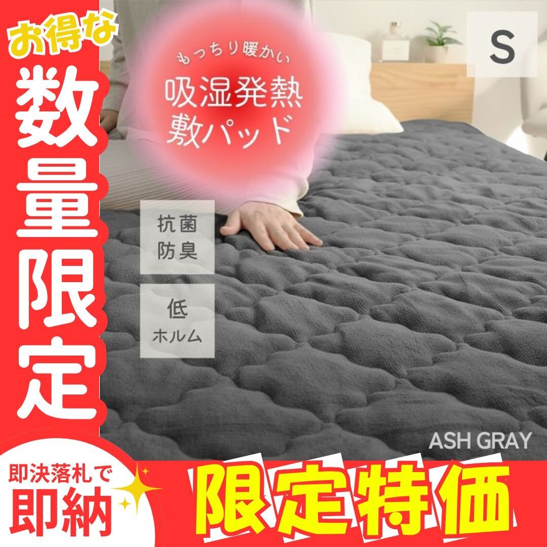 - 限定セール【シングル アッシュグレー】あったか敷きパッド 吸湿発熱 丸洗い可能 F-Tech 3層構造 保温 抗菌・防臭 静電気防止 敷パッド
