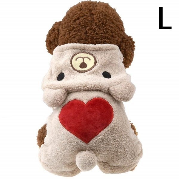 - 【vaps_4】フード付き ドッグウェア 《Lサイズ》 小熊 ハート柄 ふわふわ もこもこ 秋冬服 フリース ニット セーター 犬の服 送込