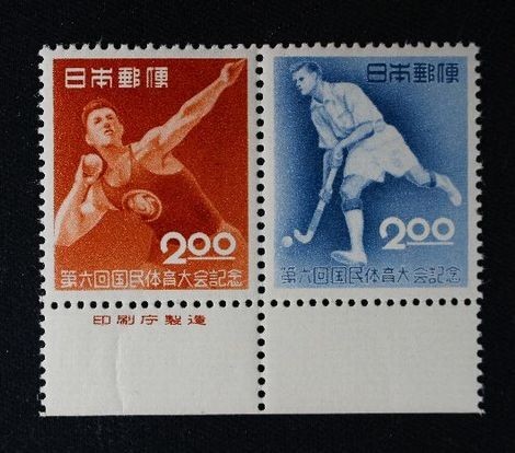 - ☆コレクターの出品 第6回国体記念『連刷ペア』10円/印刷庁銘板付 NH美品 M-9