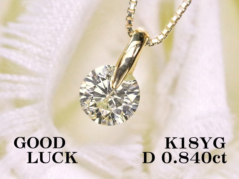 > 【新品・未使用】1円~最落無 天然一粒ダイヤモンド 0.840ct,I-1,Excellent,GGSソーティング付,K18YG シンプル ダイヤモンド ペンダント
