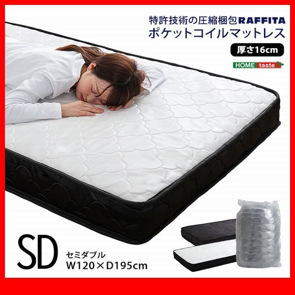 > マットレス★新品/ポケットコイルマットレス セミダブル/快眠 圧縮ロール梱包/ブラック ホワイト/zz
