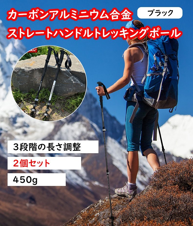 - アルミニウム合金トレッキングポール 2本セット カーボンファイバー登山杖 トレッキングステッキ 調節可能 軽量 シルバー hw1113bk