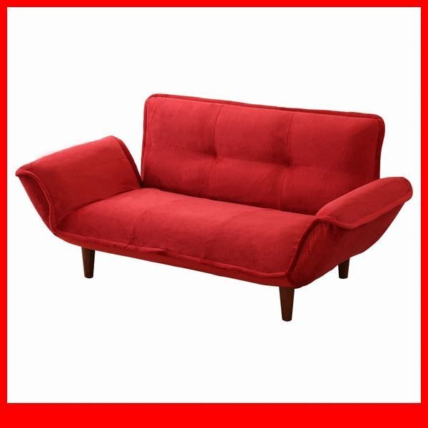 > ソファ★新品/コンパクトカウチソファ ラブソファ2人掛け/ポケットコイル リクライニング 起毛タイプ 安心の日本製/レッド/a4