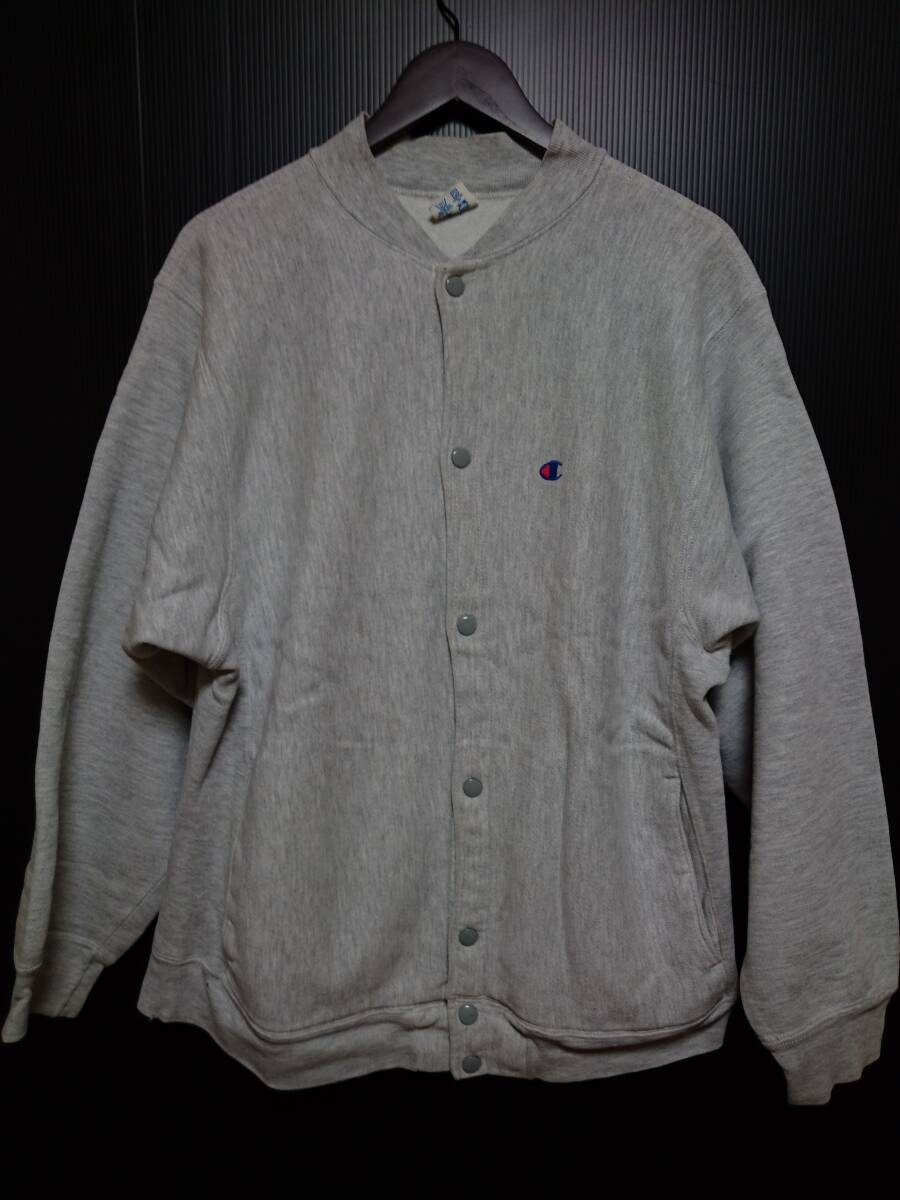 > 80s チャンピオン リバースウィーブ スナップボタン カーディガン スウェット グレー L トリコタグ USA製 Champion REVERSE ビンテージ