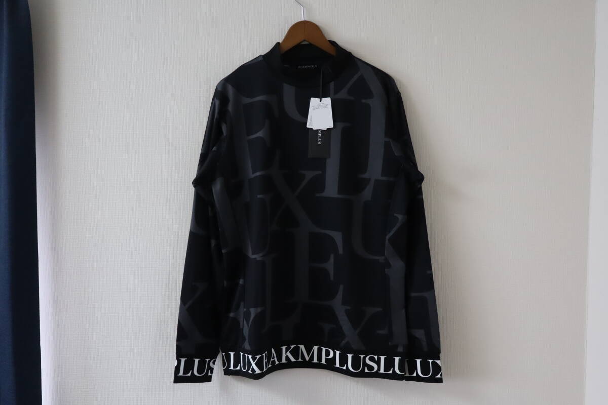 > ☆LUXE AKM PLUS/リュクスエイケイエムプラス☆未使用 1円スタート!!総柄ロゴ モックネックロングTシャツ サイズ:XL ゴルフ スポーツ