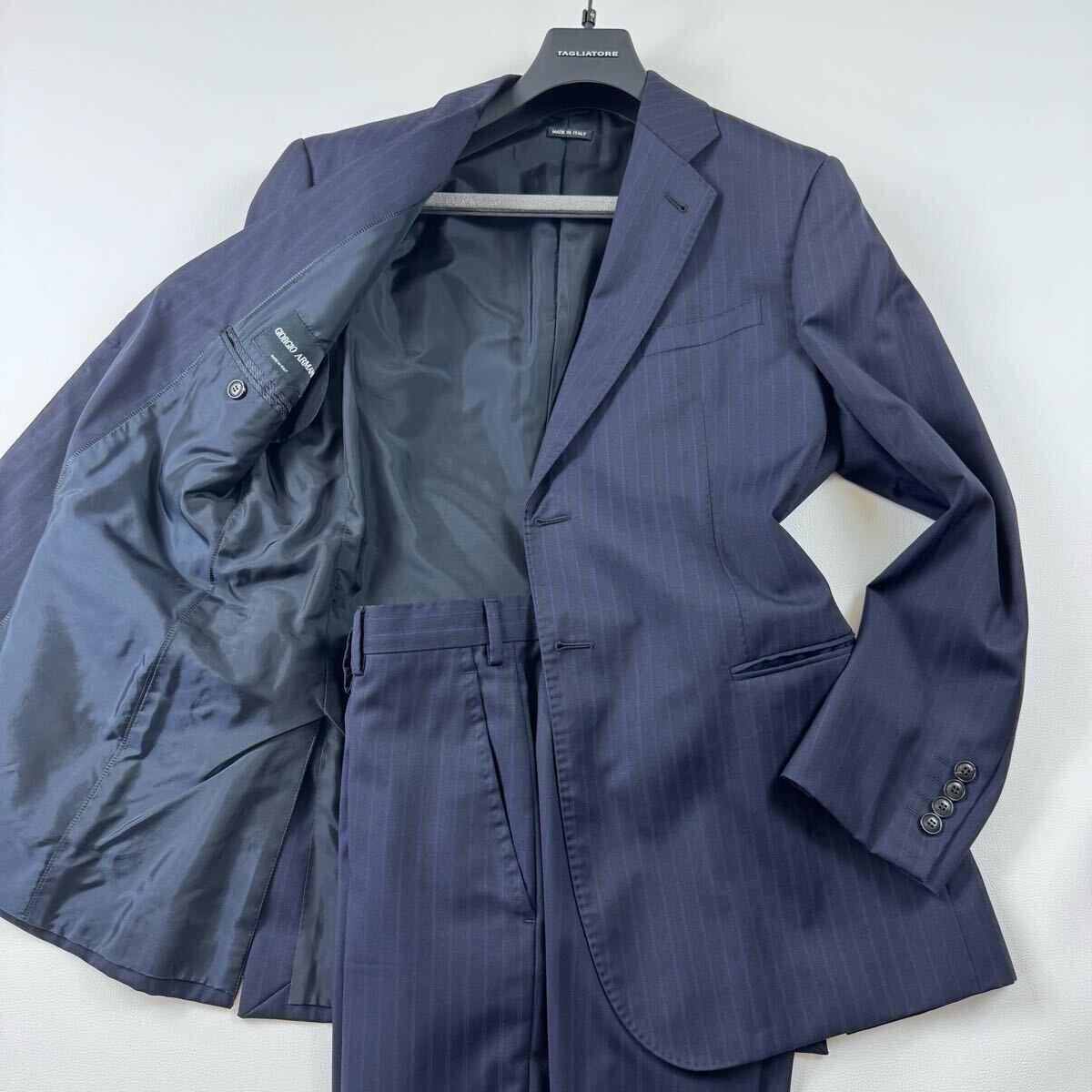 > 良品☆XL相当 Giorgio Armani ジョルジオアルマーニ セットアップ スーツ テーラードジャケット ネイビー 紺色 ストライプ イタリア製 2B