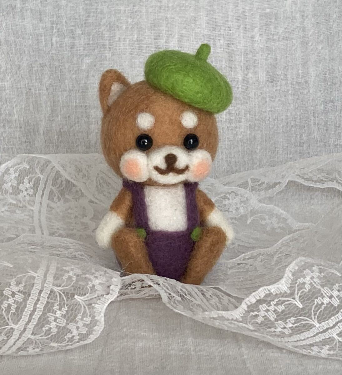 - 【ベレー帽*柴犬】羊毛フェルト/ニードルフェルト/ハンドメイド/人形