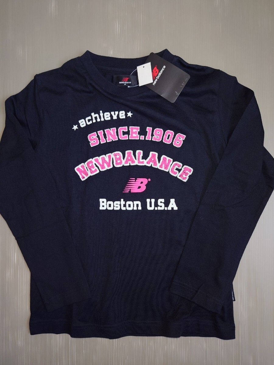 - 未使用タグ付 ニューバランス フロントロゴプリント 長袖 Tシャツ ブラック M
