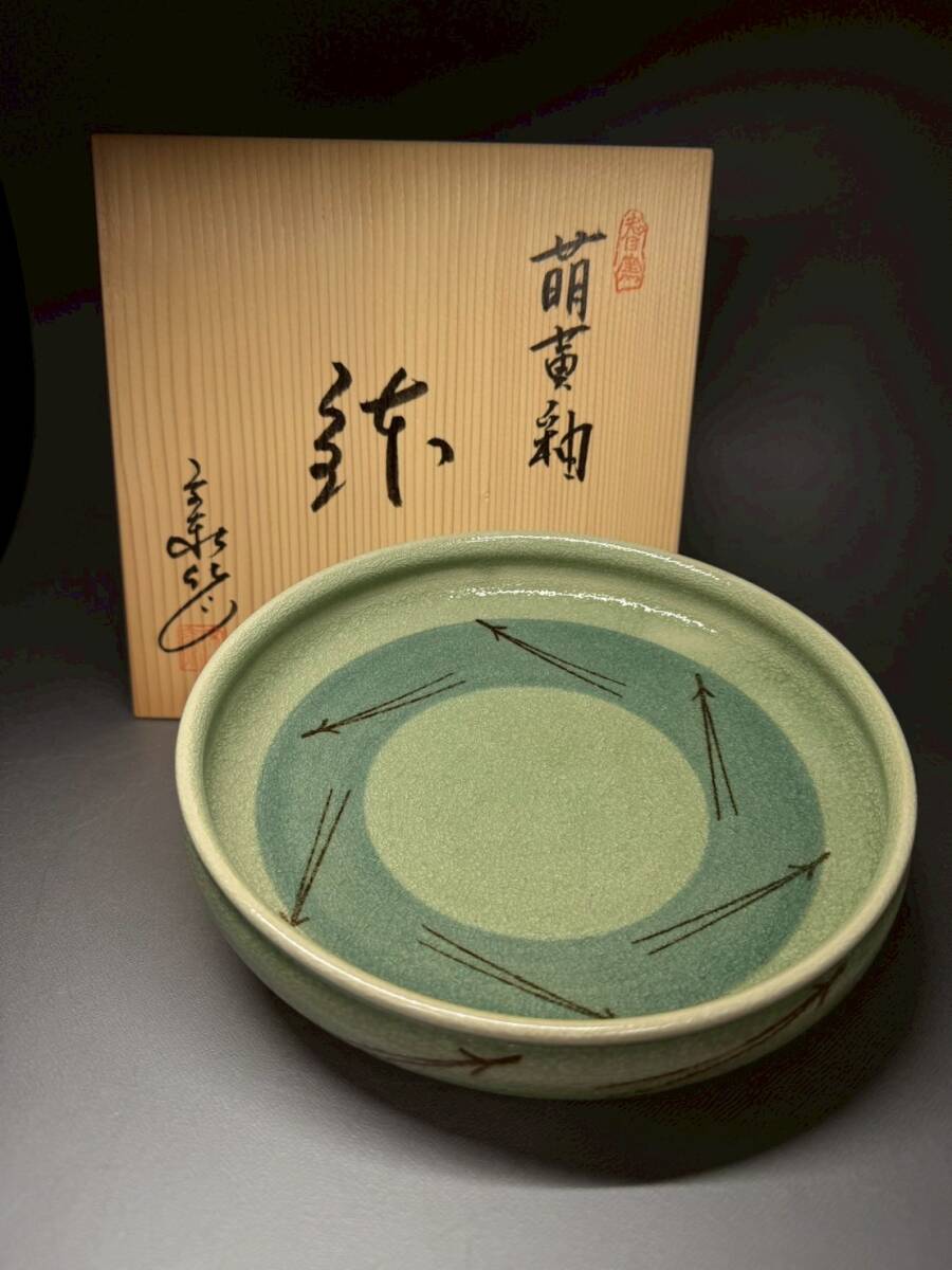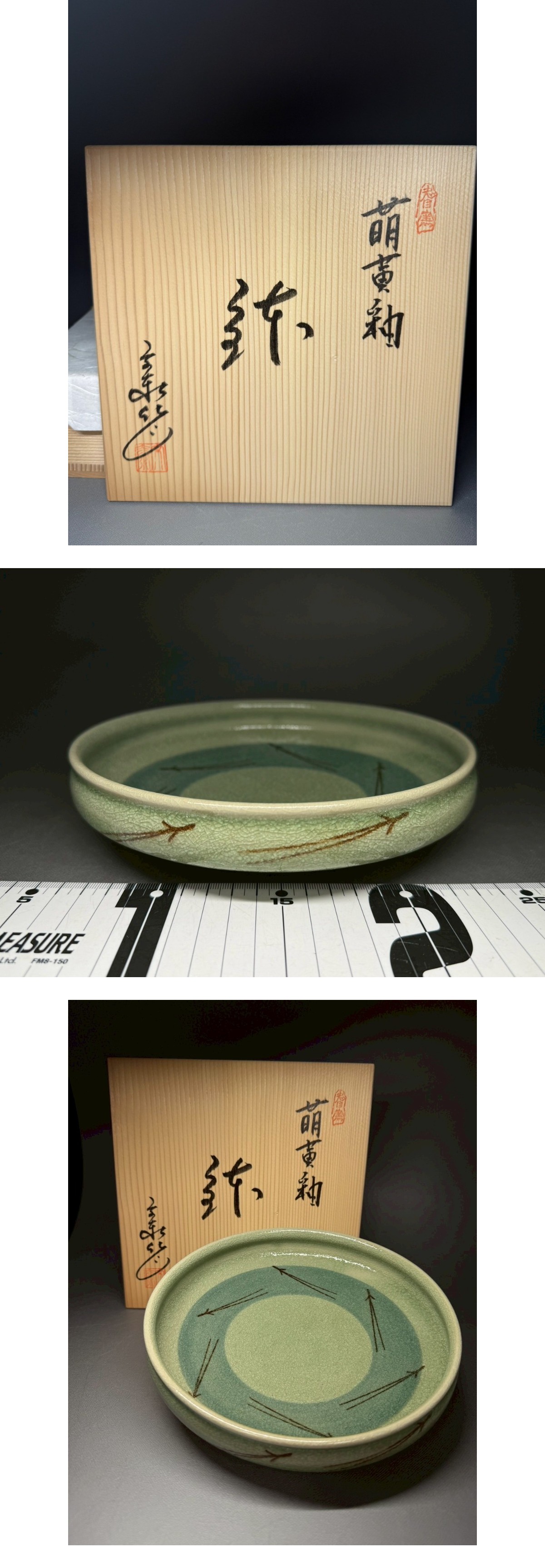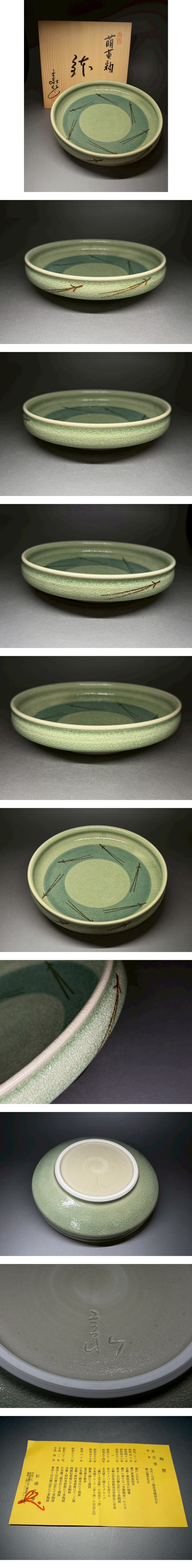 > 萌黄釉 杉浦 文泰 作 兎月窯 鉢 菓子鉢 骨董 置物 飾物 日本伝統工芸品 芸術 古美術 時代物 茶道具 落款 在銘 作家 和 食器99