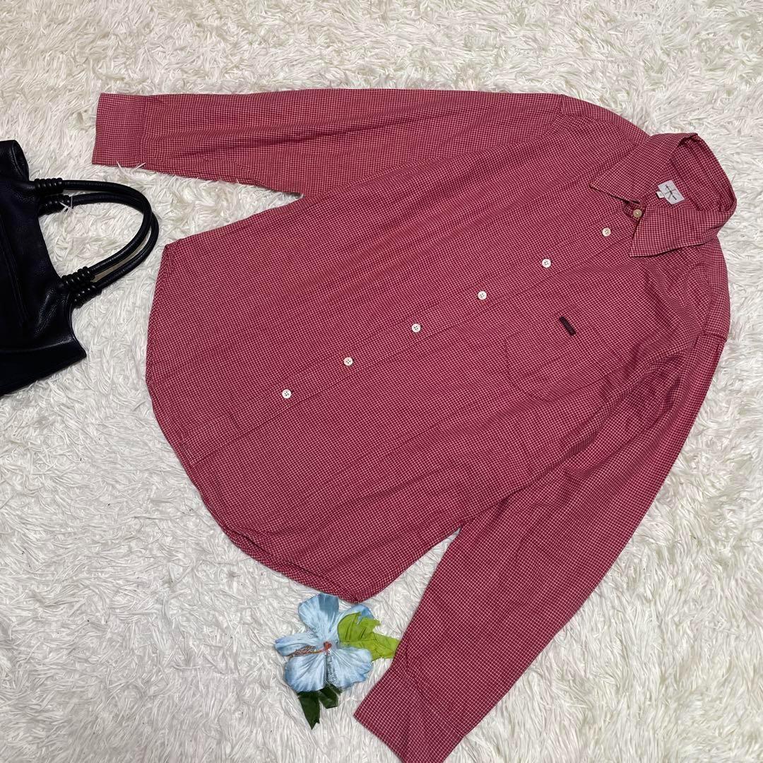 - 極美品 カルバンクラインジーンズ 長袖シャツ 赤 チェック ワンポイントロゴ 綿 コットン メンズ Mサイズ