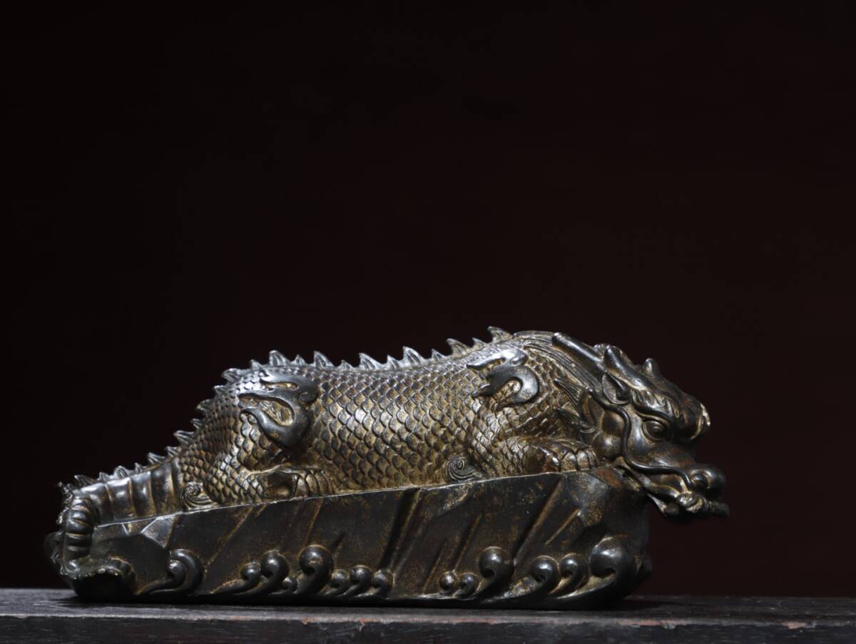 - 旧蔵 古銅彫 泥金 吸水獸 古擺件 古置物 中国古玩 骨董品 時代物 稀少唐物