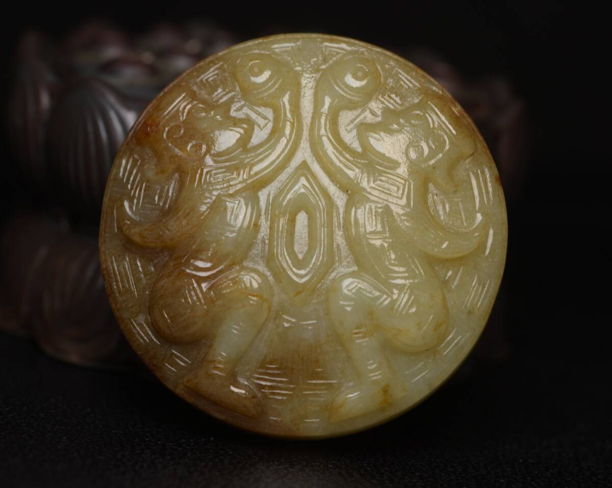 - 旧蔵 和田玉彫 帶扣 根付 中国古玩 骨董品 時代物 稀少唐物